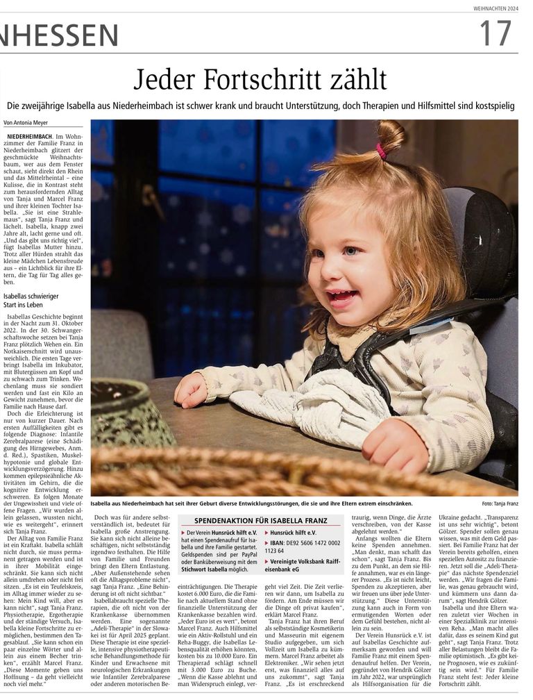 Bericht über unser Projekt für Isabella in der Allgemeinen-Zeitung am 24.12.2024